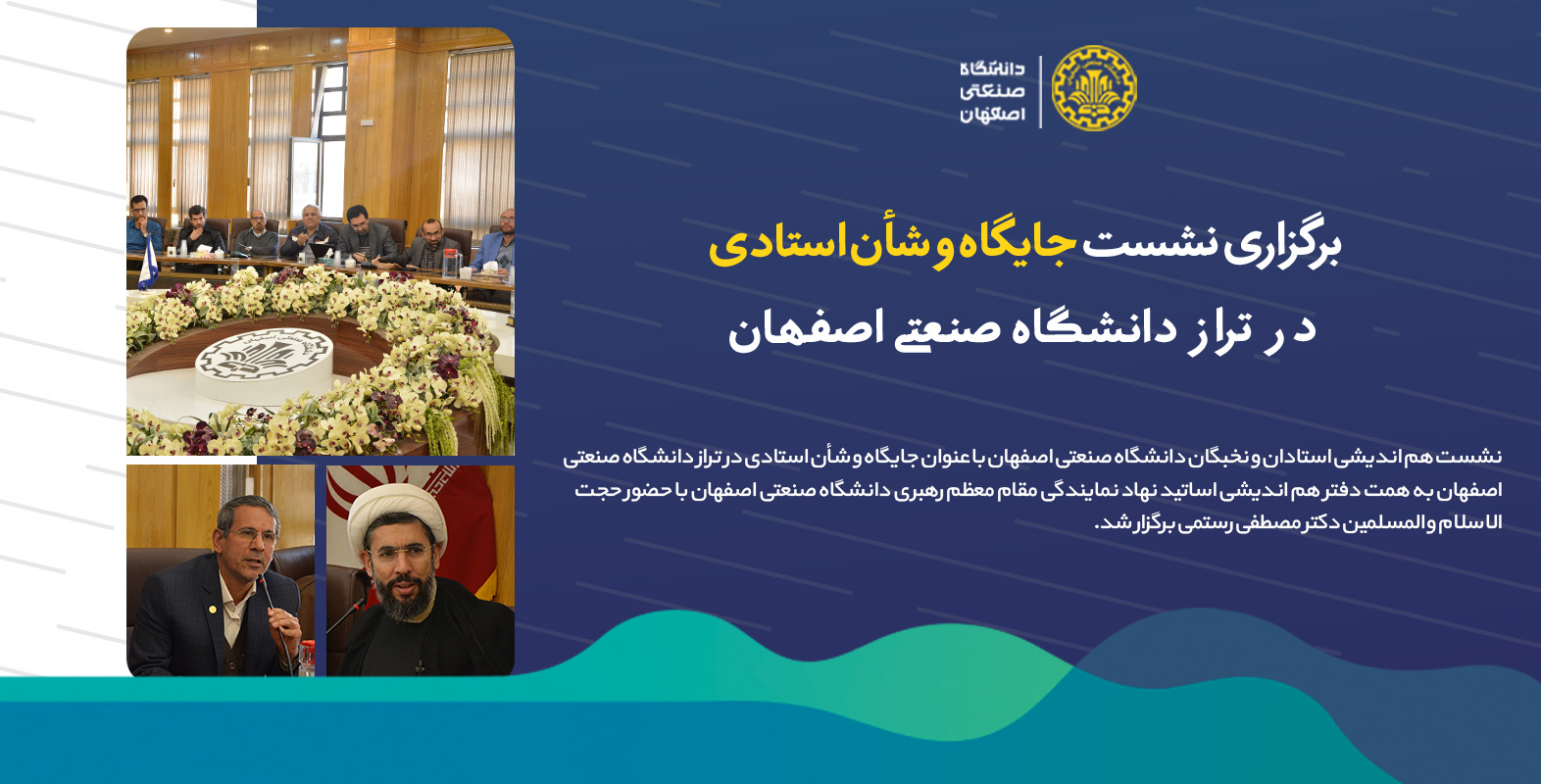 نشست هم اندیشی استادان و نخبگان دانشگاه صنعتی اصفهان با عنوان جایگاه و شأن استادی در تراز دانشگاه صنعتی اصفهان به همت دفتر هم اندیشی اساتید نهاد نمایندگی مقام معظم رهبری دانشگاه صنعتی اصفهان با حضور حجت الاسلام و المسلمین دکتر مصطفی رستمی برگزار شد.