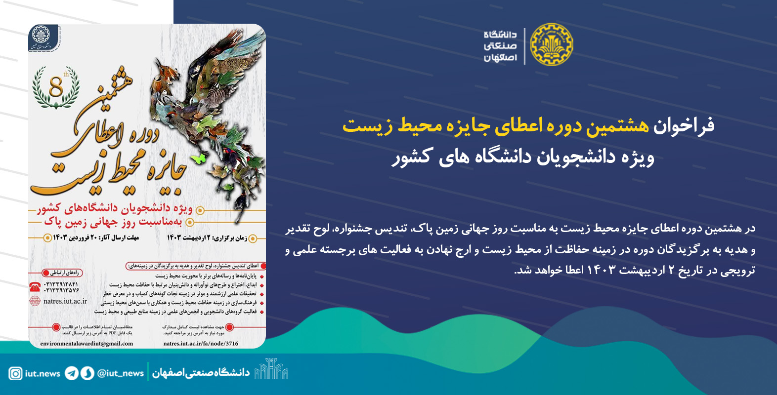 فراخوان هشتمین دوره اعطای جایزه محیطزیست ویژه دانشجویان دانشگاههای کشور